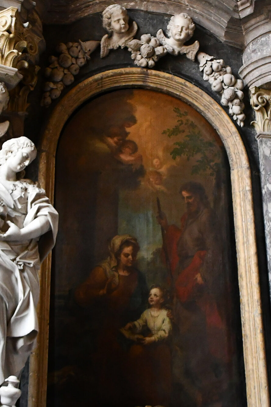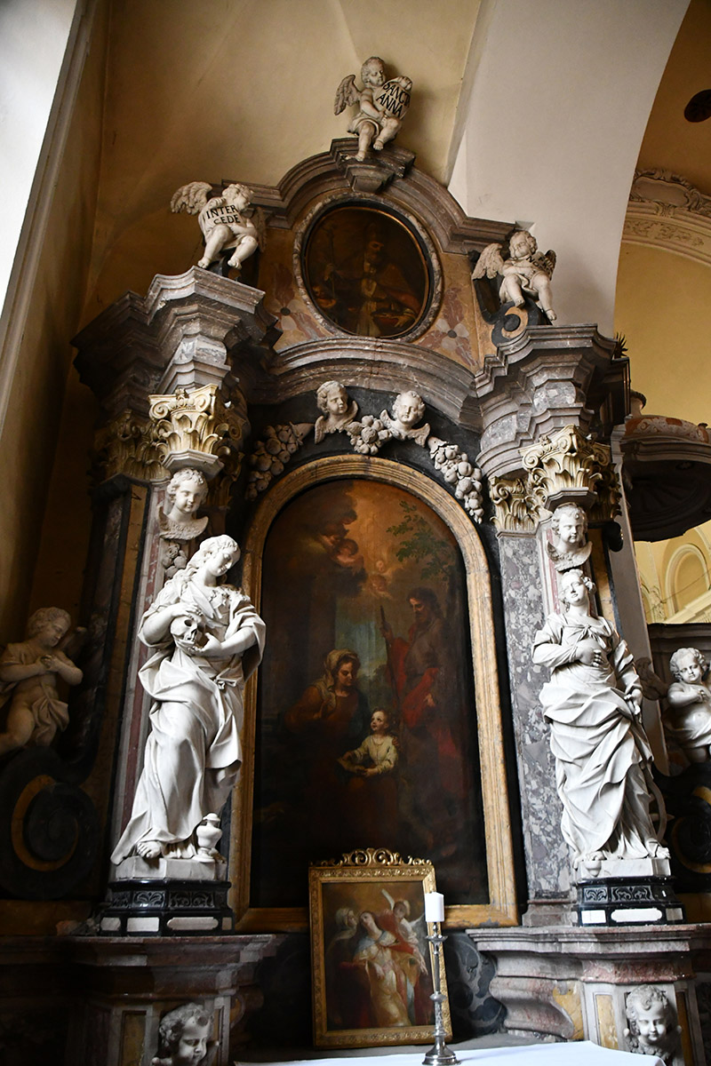 Der Altar der heiligen Anna wurde im Jahr 1724 errichtet und bildet aus architektonischer Sicht das Gegenstück zum Altar des heiligen Johannes Nepomuk auf der gegenüberliegenden Seite der Kirche. Im Vergleich zu diesem weist der Anna-Altar eine ruhigere architektonische Komposition auf, bleibt aber weniger konventionell als die beiden vorderen Seitenaltäre.