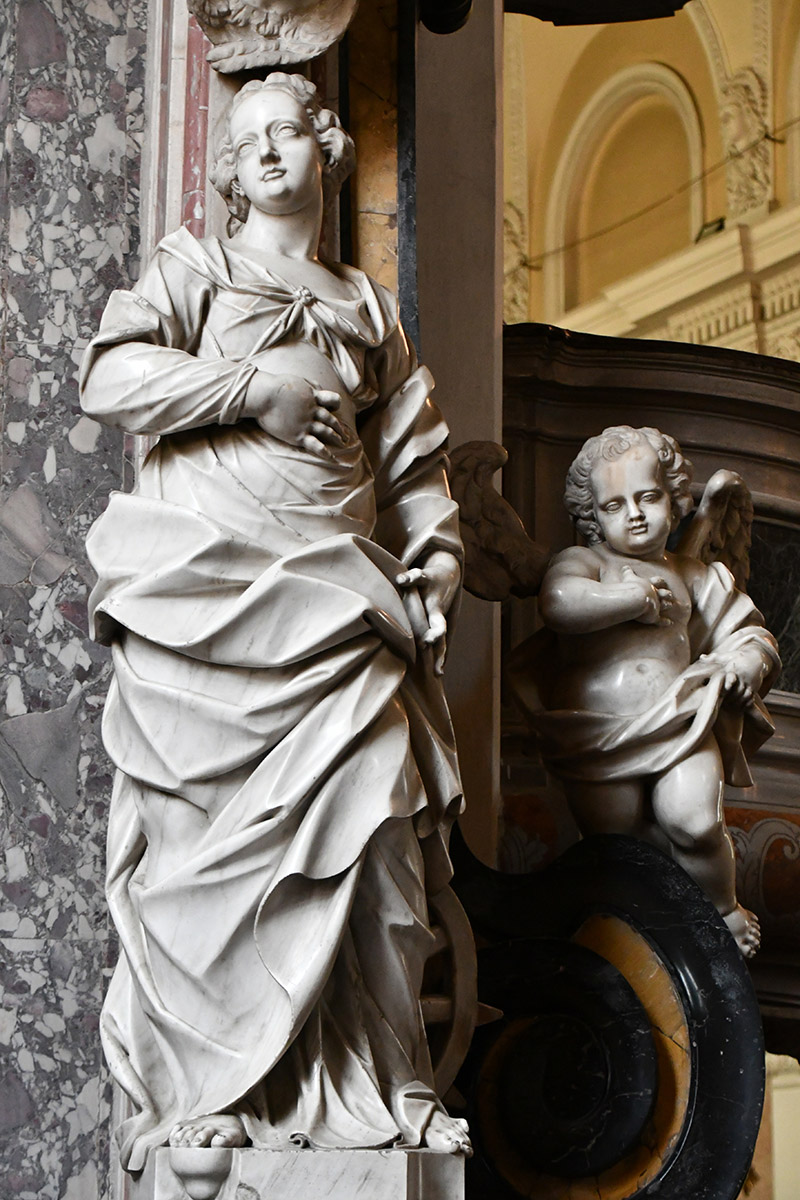 Anstelle von Säulen wird die Struktur von zwei Skulpturen aus weißem Marmor getragen, die die heilige Maria Magdalena und die heilige Katharina von Alexandrien darstellen – Werke von Francesco Robba, einem der bedeutendsten Barockbildhauer Ljubljanas.