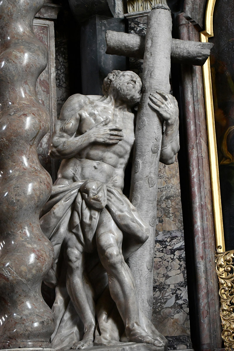 Alle Skulpturen stammen zweifelsfrei von Angelo de Putti, der einen entscheidenden Einfluss auf den barocken Skulpturstil in Krain hatte. Auch wenn die endgültige Ausführung des Altars möglicherweise einem anderen Meister (eventuell Francesco Robba oder Luka Mislej) oblag, ist es sehr wahrscheinlich, dass de Putti eine zentrale Rolle beim Entwurf spielte.