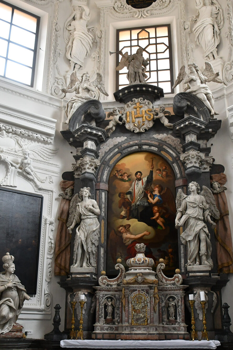 Cet autel exprime une dévotion profonde et fervente, enracinée dans la tradition jésuite des neuvaines précédant la fête du saint, célébrées depuis environ 1700. Pour ces célébrations solennelles, des décors temporaires étaient dressés devant l’ancien autel, avec des anges et des figures allégoriques des continents, qui furent plus tard intégrées de manière permanente dans le programme artistique de l’autel.
