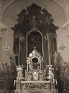 Slikar Janez Wolf naslikao je novu oltarnu fresku koja se vidi iza Robbina glavnog oltara. Naslikao ju je u tradiciji baroknog iluzionističkog slikarstva, nadahnjujući se Pozzovim oltarom sv. Ignacija u crkvi Il Gesù u Rimu.