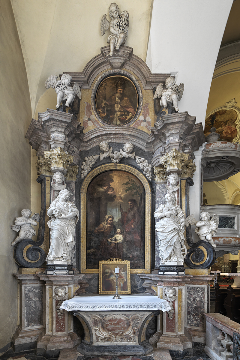 W centralnej niszy znajduje się obraz przedstawiający św. Annę uczącą czytać Maryję, podczas gdy św. Joachim spogląda na nie z tła. Obraz został namalowany przez Bartolomea Letteriniego, jednego z najważniejszych malarzy weneckich XVIII wieku. Po bokach stoją wspomniane rzeźby świętych autorstwa Robby, a na bocznych wolutach klęczą dwa anioły w dynamicznej pozie, z rozpostartymi skrzydłami.