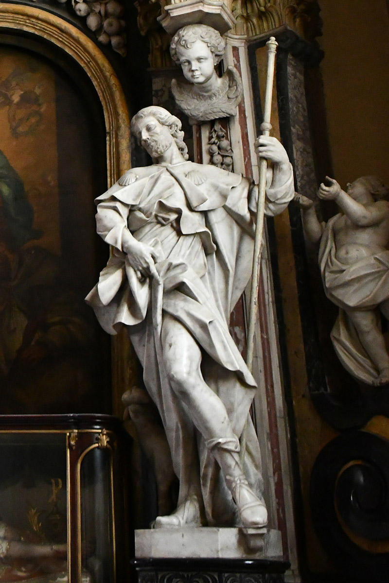 Ołtarz św. Jana Nepomucena, znajdujący się w drugiej kaplicy po prawej stronie od ołtarza głównego, odzwierciedla architekturę ołtarza św. Anny, usytuowanego po przeciwnej stronie kościoła. W 1710 roku usunięto dawny ołtarz Świętych Męczenników i wzniesiono nowy marmurowy ołtarz ku czci męczennika z Pragi, którego kult szybko się rozwijał, choć wówczas nie był jeszcze kanonizowany.