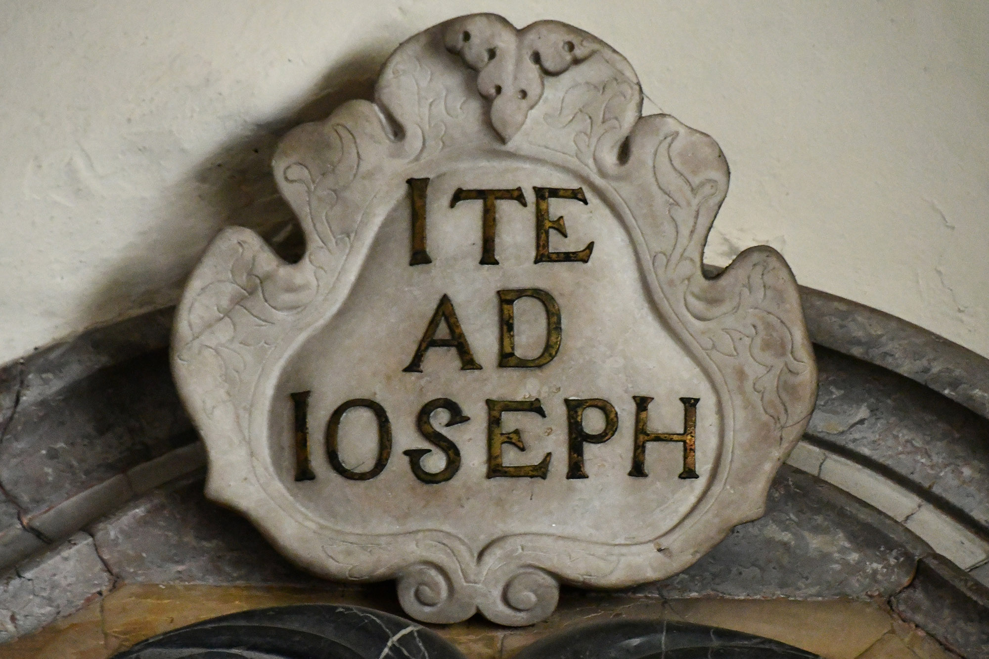 Ołtarz św. Józefa, wykonany w 1716 roku z inicjatywy jezuity Jožefa de Giorgi, wyróżnia się dynamiczną architekturą późnobarokową, charakteryzującą się dwiema spiralnymi kolumnami, które dominują w kompozycji. Został zbudowany z importowanego marmuru i wzbogacony okazałymi rzeźbami św. Dyzmy i św. Barbary, wykonanymi przez rzeźbiarza Angelo Puttiego. Centralny obraz w ołtarzu, przedstawiający Śmierć św. Józefa, został namalowany przez Franza Karla Remba około 1702 lub 1710 roku. W górnej części ołtarza widnieje inskrypcja „Ite ad Joseph” (Idźcie do Józefa), obok której znajduje się płaskorzeźba przedstawiająca zaślubiny Najświętszej Maryi Panny. Poniżej ołtarza, na przedniej stronie mensy, znajduje się delikatny relief ukazujący św. Józefa z Dzieciątkiem Jezus, który dodaje całej kompozycji czułości i głębi duchowej.